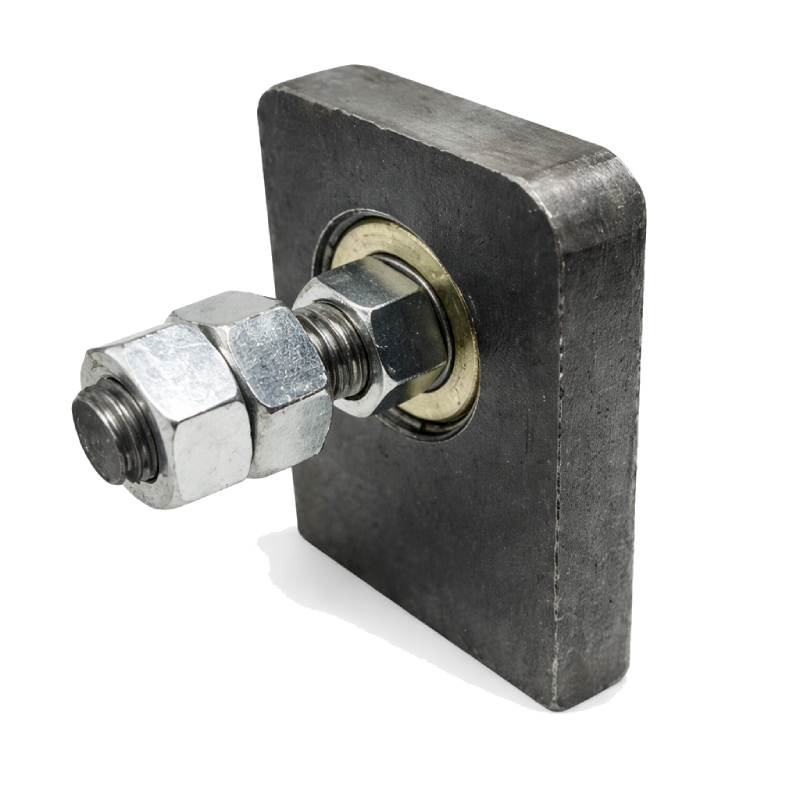 Mancal de alta resistência com rolamento blindado para braços de portão de elevação. Movimento suave, silencioso e redução de carga no motor.